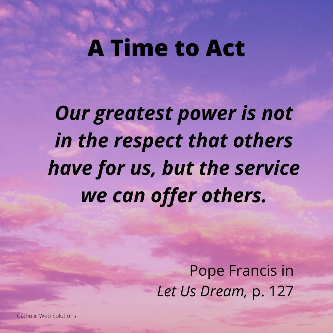 In Part Three of Let Us Dream, Pope Francis discusses taking action which is the logical next step after we have assessed the reality around us (Part One) and discerned how God is calling us to respond (Part Two). Our whole world has been turned upside down by the pandemic. Together we have experienced suffering, death, isolation and losses of every kind. Losses we could not have imagined the year before. The poor and the most vulnerable suffered the most. During this time of pandemic many people united to address Covid-19 and its consequences.